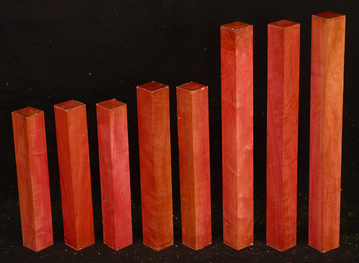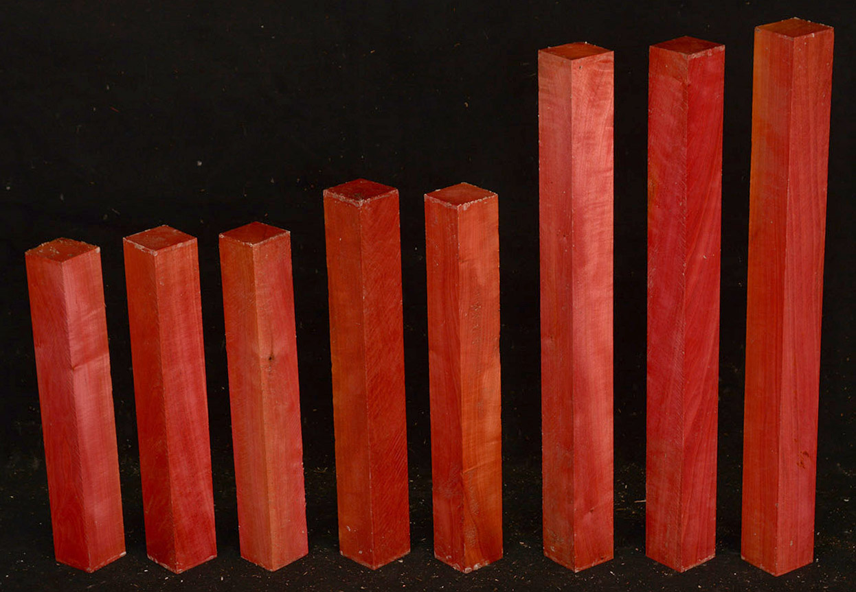 A fairly rare wood from Southern Africa ranging in color from light pink to watermelon red. At one time it was described as being "rarer than diamonds". It is very dense, hard and heavy and takes a very high polish. Beautiful for turnery, inlays and other precious items.