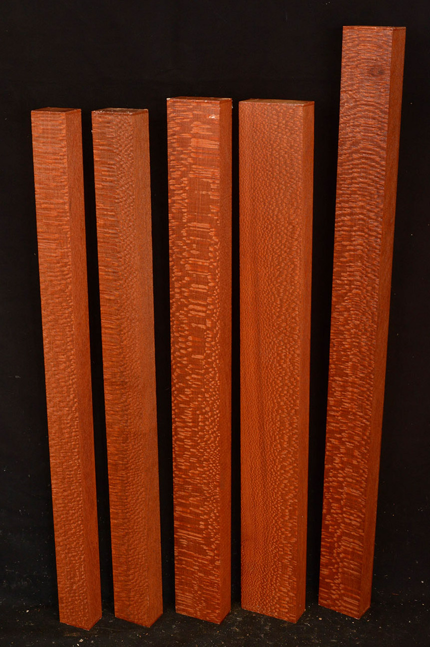 Similar to Brazilian Lacewood but a bit denser with a darker reddish-brown color. Beautiful, lustrous grain with big, silvery medullary rays on the quartersawn face.