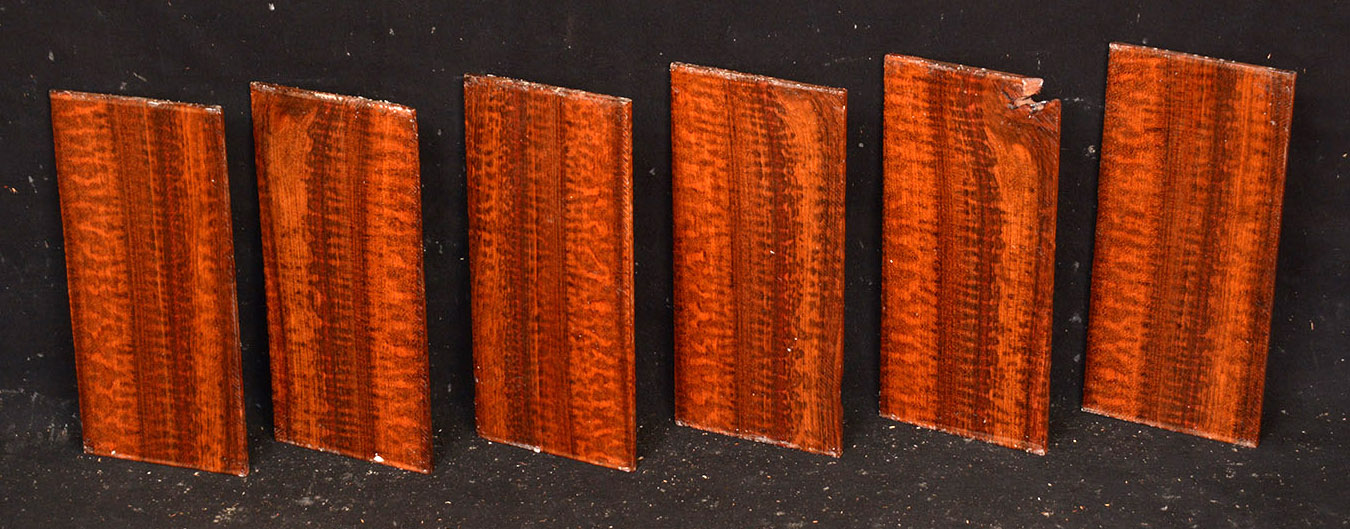 Also called Letterwood and Leopardwood. Color: dark red to reddish brown with irregular black speckles or stripes. Fine textured and highly lustrous. Very hard and heavy, 75-84 lbs/cu ft. Takes a beautiful finish. Very rare and very expensive. Guyana and Surinam.