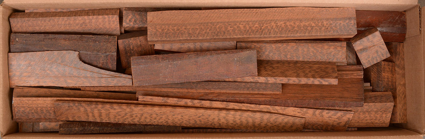 Also called Letterwood and Leopardwood. Color: dark red to reddish brown with irregular black speckles or stripes. Fine textured and highly lustrous. Very hard and heavy, 75-84 lbs/cu ft. Takes a beautiful finish. Very rare and very expensive. Guyana and Surinam.