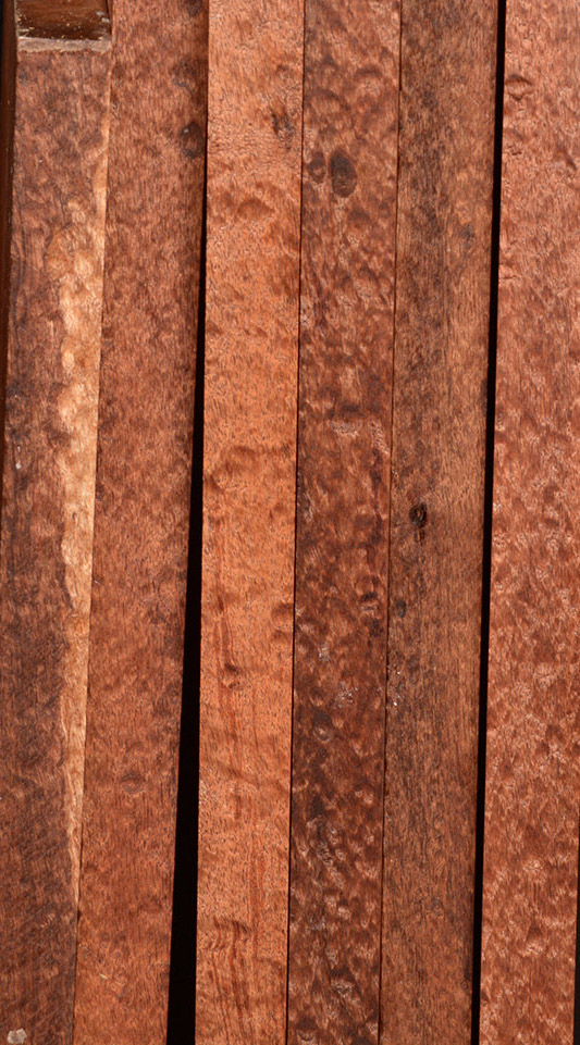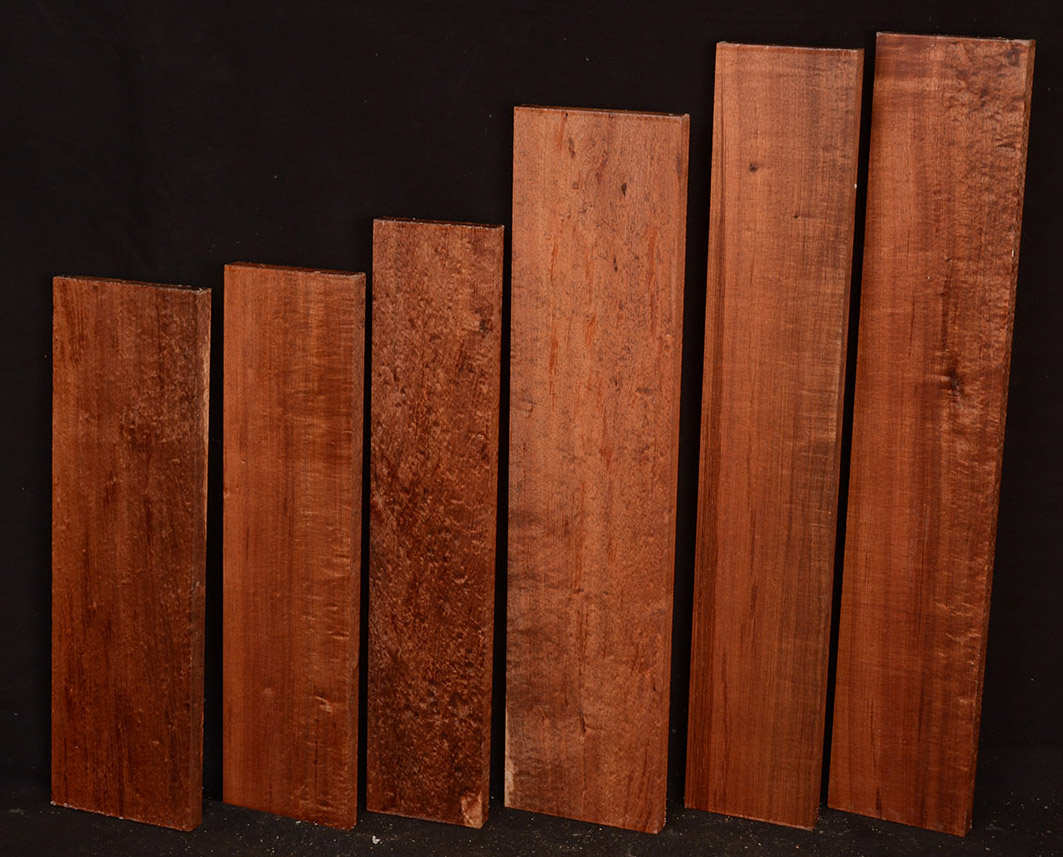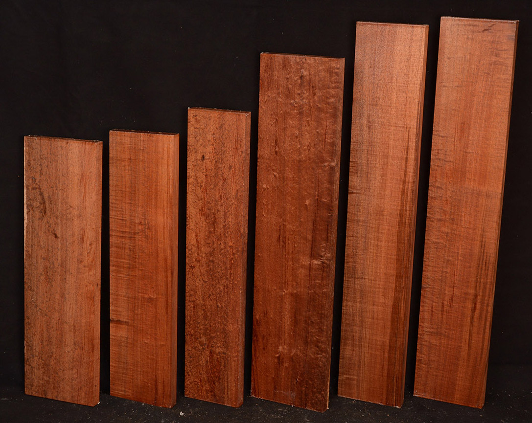 The heartwood of Tasmanian Blackwood is a golden-brown to reddish-brown color, oftentimes with darker streaks. It is extremely lustrous and takes a beautiful, smooth finish. It is a very close match to Koa and the type of figuring and tonal qualities is similar.