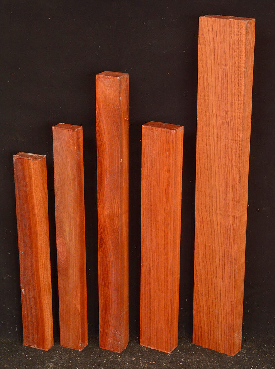 Also called Satine, Cacique, and Cardinalwood. The heartwood is a rich strawberry red, in sharp contrast to the light colored sapwood. Takes a high, lustrous finish. Kiln-dried.