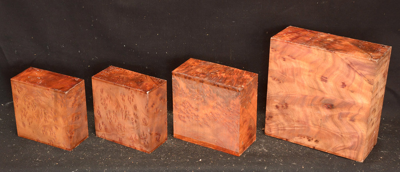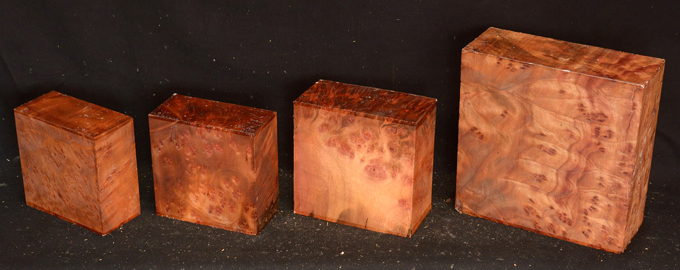 This rare burl is from S.E. Asia and is seldom seen on the world market. It is fine-grained and varies in color from a light reddish-brown to almost scarlet. It is easy to work and has a very pungent, spicy scent. For a burl it is remarkably stable. Green to partially air dried.