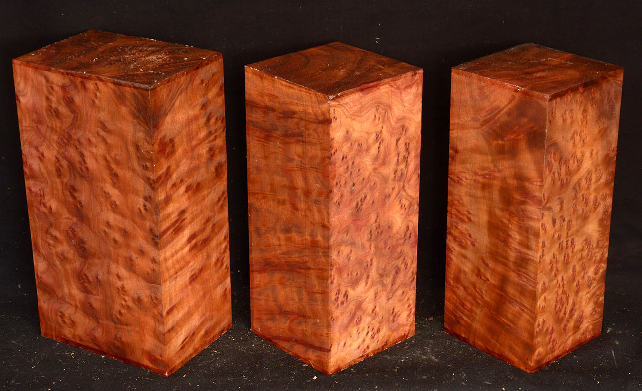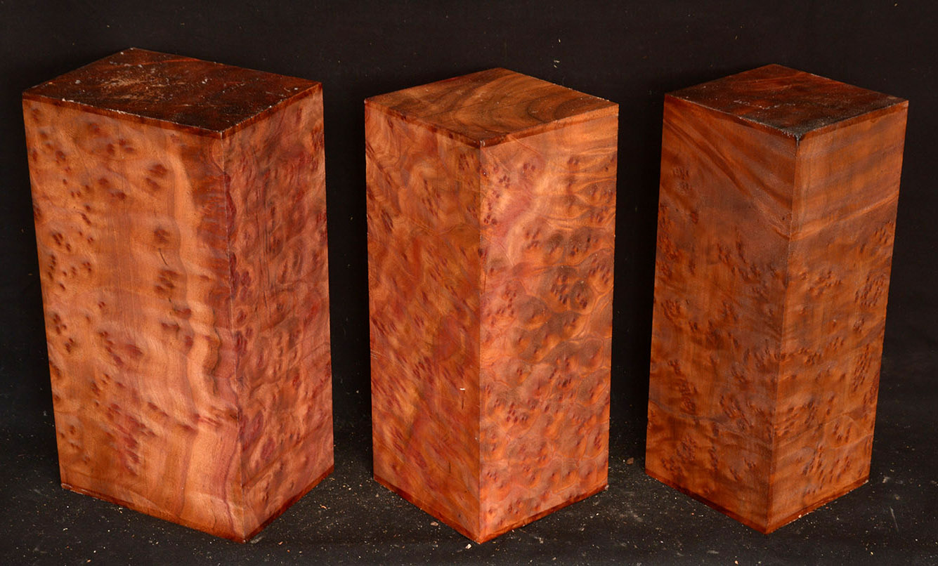 This rare burl is from S.E. Asia and is seldom seen on the world market. It is fine-grained and varies in color from a light reddish-brown to almost scarlet. It is easy to work and has a very pungent, spicy scent. For a burl it is remarkably stable. Green to partially air dried.