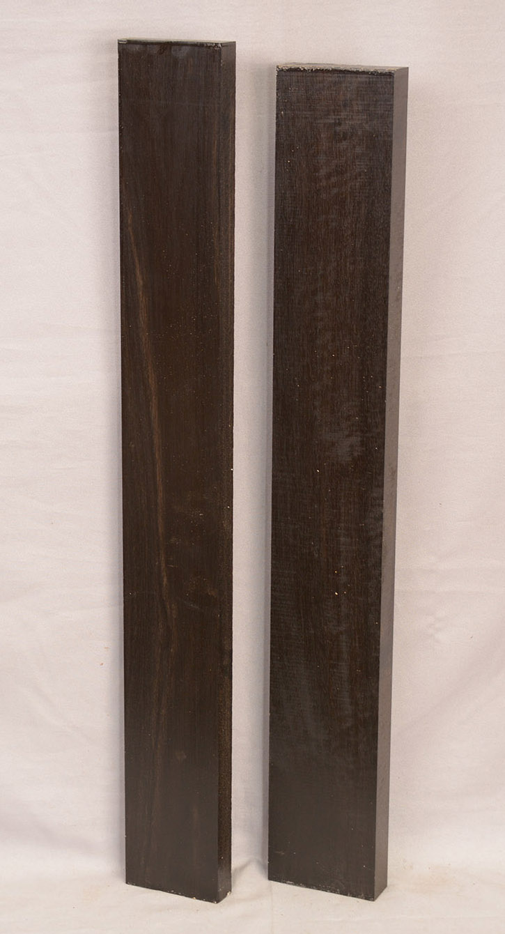 Sometimes called Gabon or Gaboon, this Ebony is sometimes jet black but oftentimes has grayish streaks that mostly disappear when finished or after the made object has been put into service. This Ebony has a marked resistance to checking that is characteristic of some of the Indian and Asian species. It has a wonderful texture and is easily carved, planed, turned, and milled. It is fairly fine-grained and takes a high polish. This Ebony usually originates in either Cameroon or Nigeria and the logs are rough hewn in the forest and oftentimes brought to the nearest road by human porters. With the disappearance of other species of black Ebony this species is fast becoming the Ebony of choice.