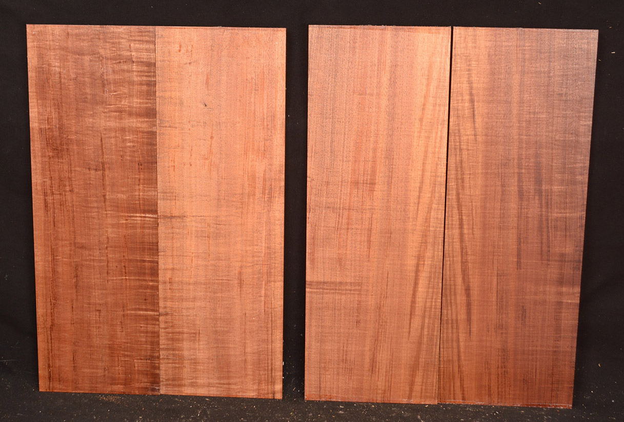 The heartwood of Tasmanian Blackwood is a golden-brown to reddish-brown color, oftentimes with darker streaks. It is extremely lustrous and takes a beautiful, smooth finish. It is a very close match to Koa and the type of figuring and tonal qualities is similar.