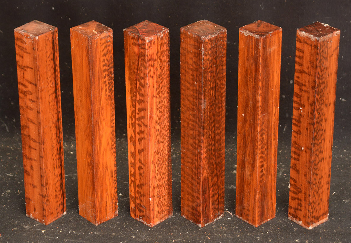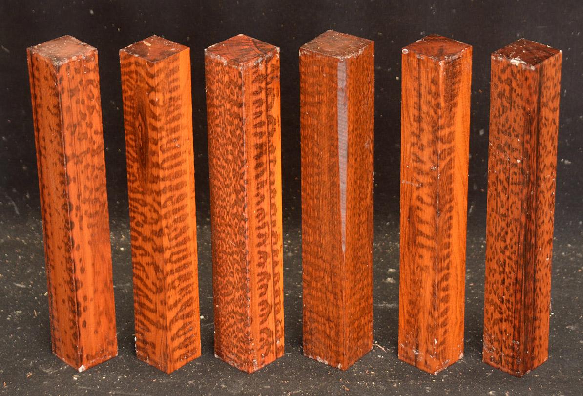 Also called Letterwood and Leopardwood. Color: dark red to reddish brown with irregular black speckles or stripes. Fine textured and highly lustrous. Very hard and heavy, 75-84 lbs/cu ft. Takes a beautiful finish. Very rare and very expensive. Guyana and Surinam.