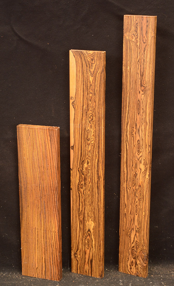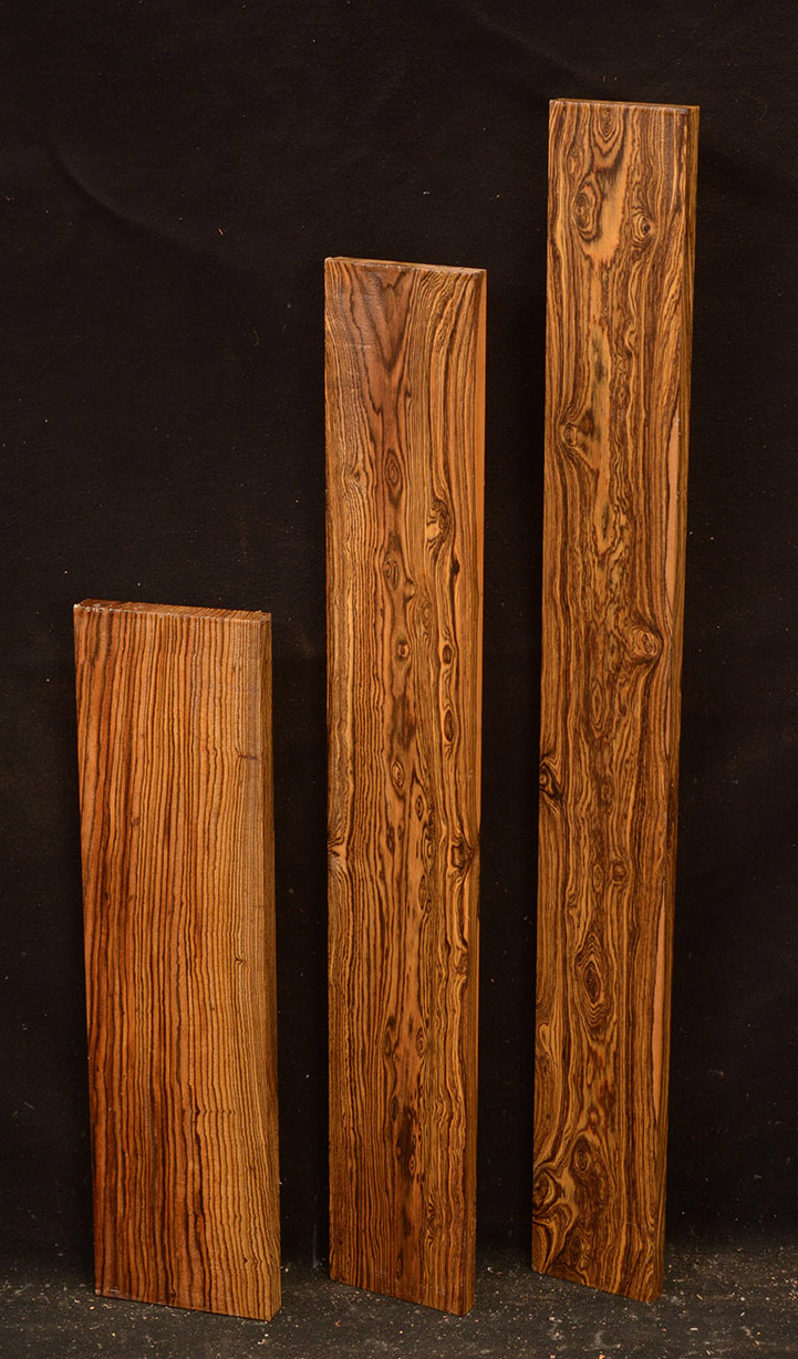 Bocote is an oily wood with a yellowish to dark brown color accented with irregular black stripes and streaks. It has a spicy smell and is hard, heavy and strong. It is easy to work and takes a very nice polish. This beautiful wood is seldom seen in woodworker's shops.