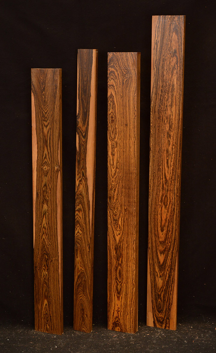 Bocote is an oily wood with a yellowish to dark brown color accented with irregular black stripes and streaks. It has a spicy smell and is hard, heavy and strong. It is easy to work and takes a very nice polish. This beautiful wood is seldom seen in woodworker's shops.
