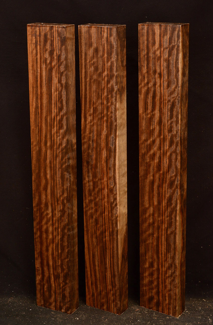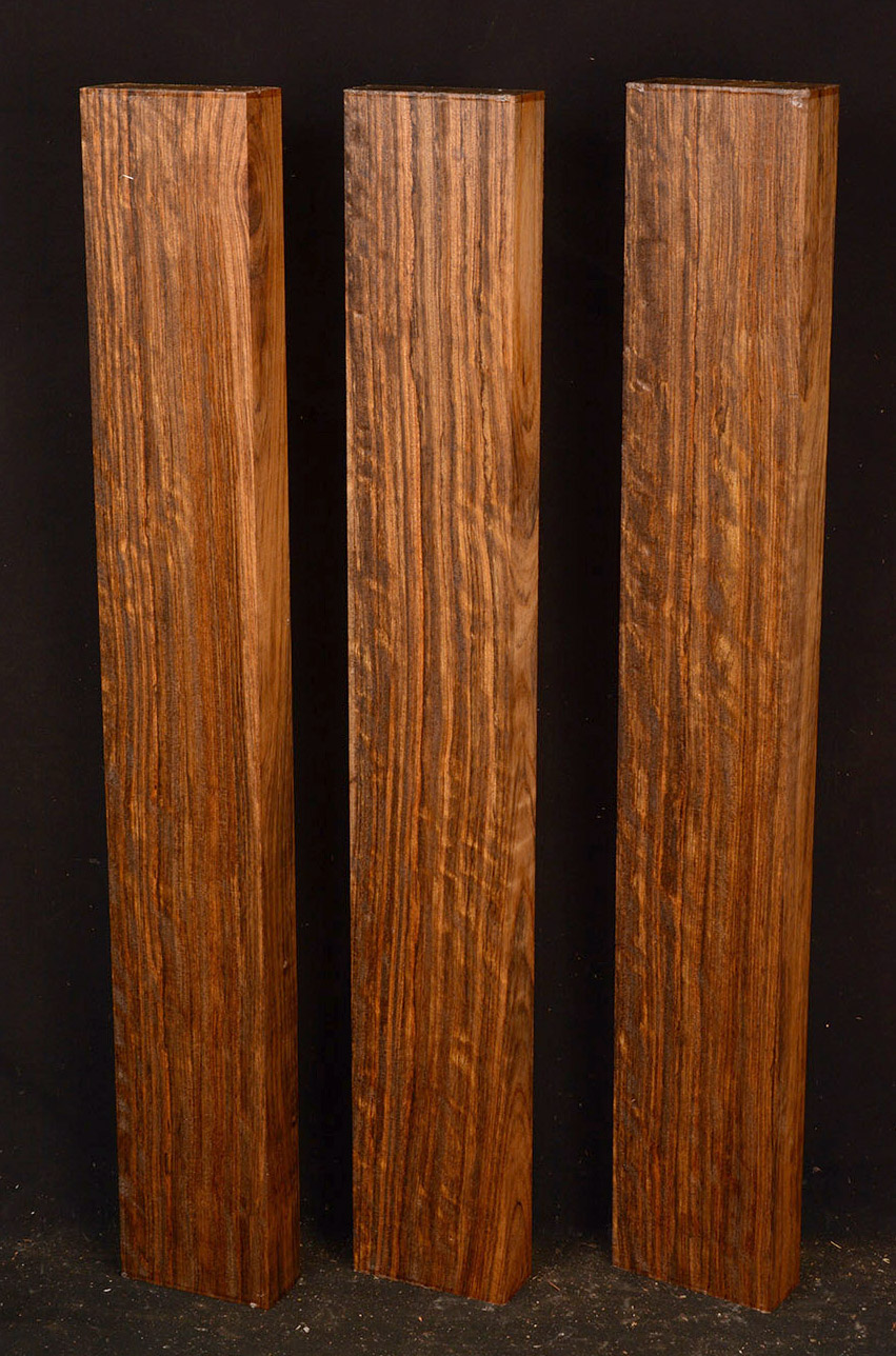 Also called Ovangkol and Amazakoue. This wood is increasingly becoming popular as an acoustic guitar wood. The color varies from a rich, golden brown to a lustrous grayish brown usually with a black stripe.