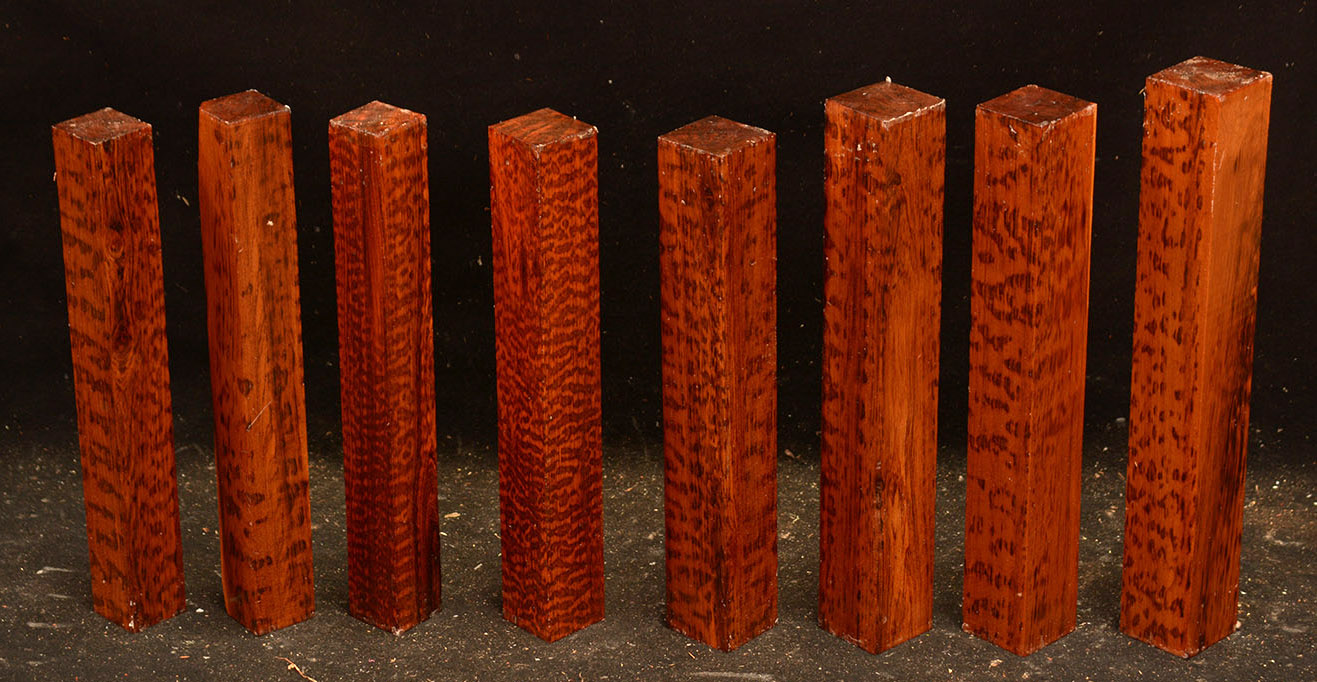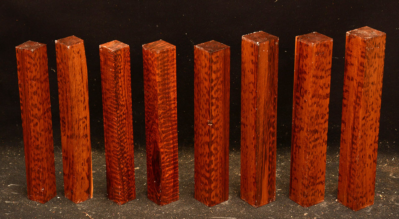 Also called Letterwood and Leopardwood. Color: dark red to reddish brown with irregular black speckles or stripes. Fine textured and highly lustrous. Very hard and heavy, 75-84 lbs/cu ft. Takes a beautiful finish. Very rare and very expensive. Guyana and Surinam.