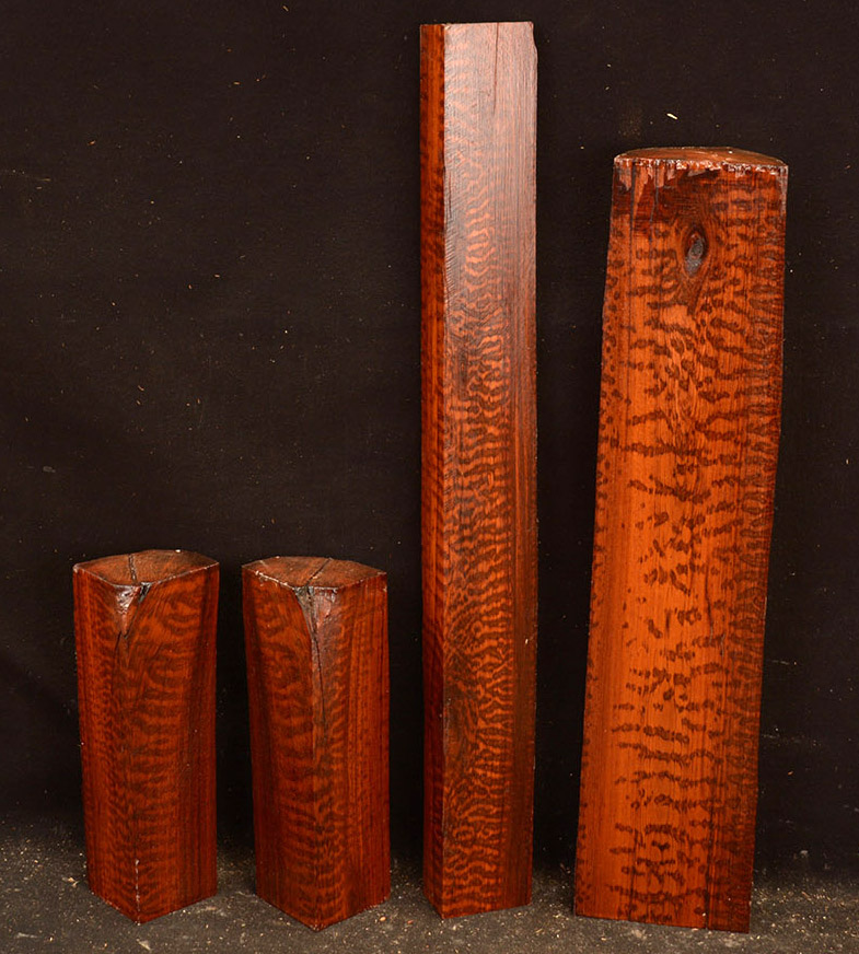 Also called Letterwood and Leopardwood. Color: dark red to reddish brown with irregular black speckles or stripes. Fine textured and highly lustrous. Very hard and heavy, 75-84 lbs/cu ft. Takes a beautiful finish. Very rare and very expensive. Guyana and Surinam.