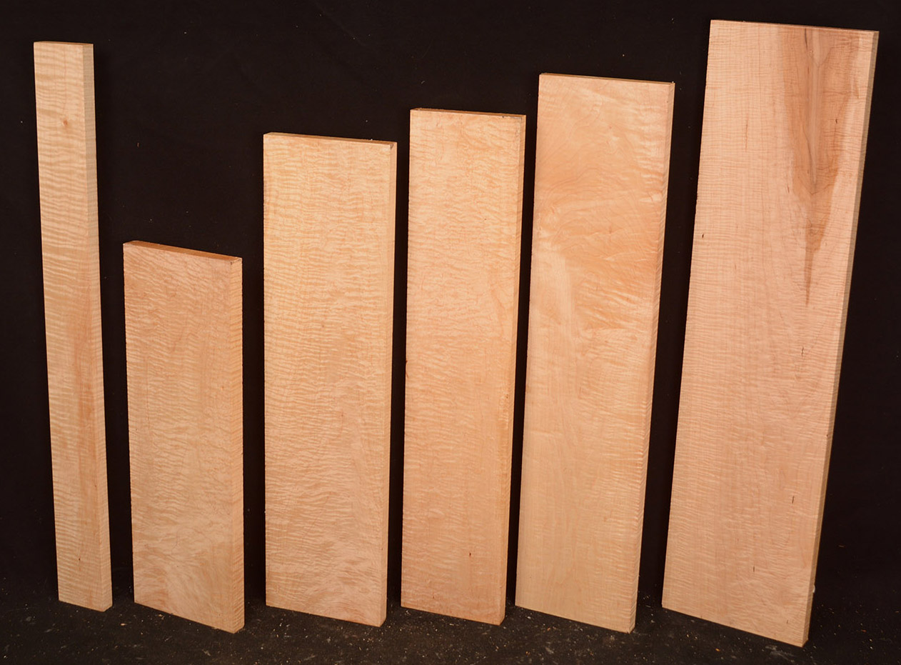 The heartwood is white or cream to light brown or reddish brown. Because of the generally small size of available logs, most sawmills produce flatsawn boards which will show a broken curl on the surface and a fiddleback curl on the quartersawn edge. Hard and heavy, 45 lbs/cu ft. Easy to work and takes a smooth polish. U.S.A.