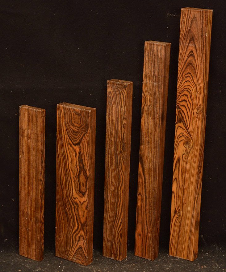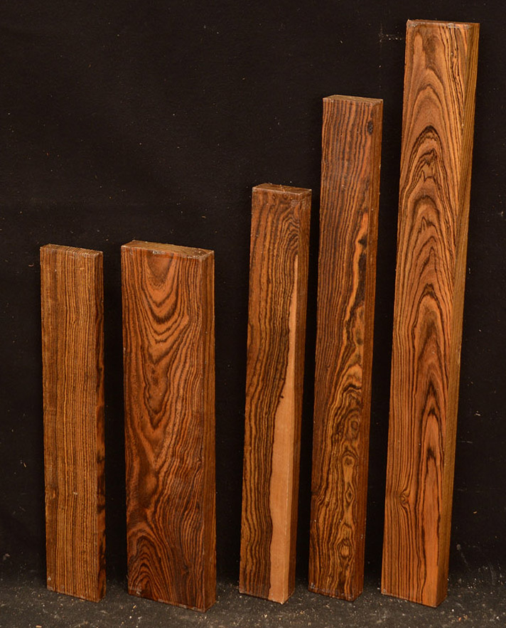 Bocote is an oily wood with a yellowish to dark brown color accented with irregular black stripes and streaks. It has a spicy smell and is hard, heavy and strong. It is easy to work and takes a very nice polish. This beautiful wood is seldom seen in woodworker's shops.