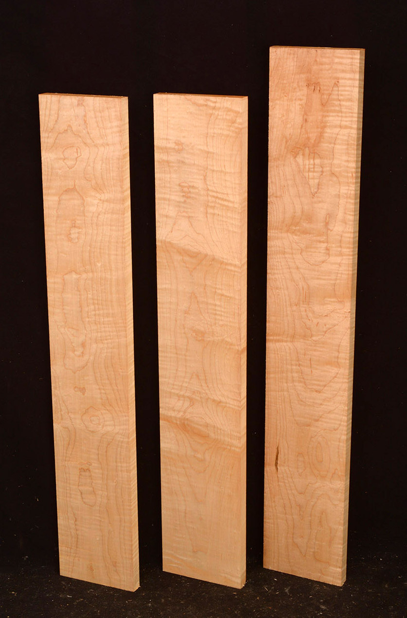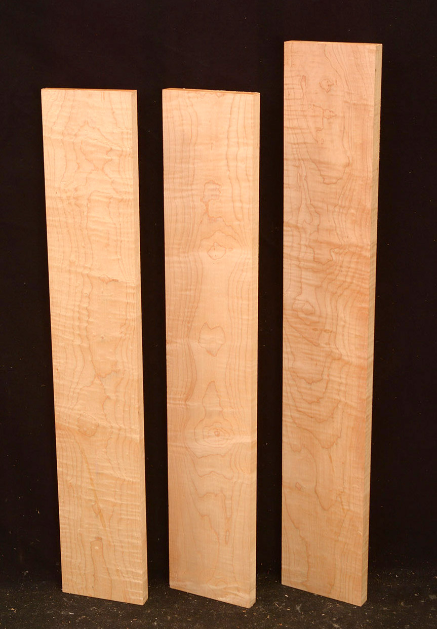 The heartwood is white or cream to light brown or reddish brown. Because of the generally small size of available logs, most sawmills produce flatsawn boards which will show a broken curl on the surface and a fiddleback curl on the quartersawn edge. Hard and heavy, 45 lbs/cu ft. Easy to work and takes a smooth polish. U.S.A.