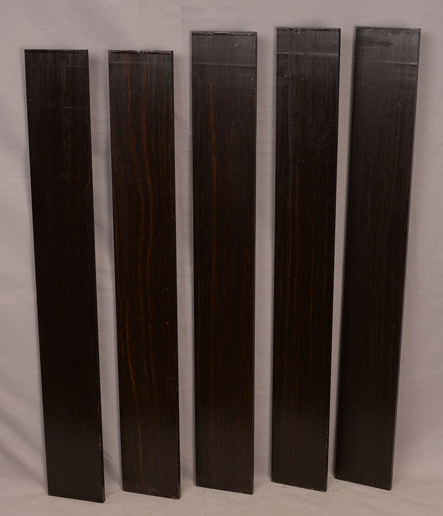 Sometimes called Gabon or Gaboon, this Ebony is sometimes jet black but oftentimes has grayish streaks that mostly disappear when finished or after the made object has been put into service. This Ebony has a marked resistance to checking that is characteristic of some of the Indian and Asian species. It has a wonderful texture and is easily carved, planed, turned, and milled. It is fairly fine-grained and takes a high polish. This Ebony usually originates in either Cameroon or Nigeria and the logs are rough hewn in the forest and oftentimes brought to the nearest road by human porters. With the disappearance of other species of black Ebony this species is fast becoming the Ebony of choice.