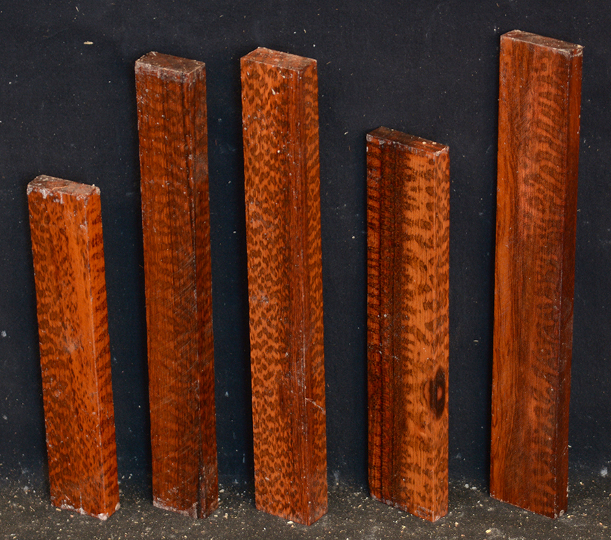 Also called Letterwood and Leopardwood. Color: dark red to reddish brown with irregular black speckles or stripes. Fine textured and highly lustrous. Very hard and heavy, 75-84 lbs/cu ft. Takes a beautiful finish. Very rare and very expensive. Guyana and Surinam.