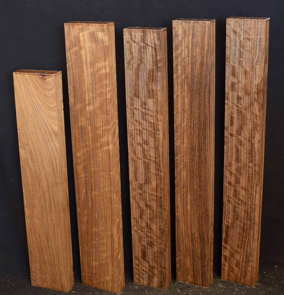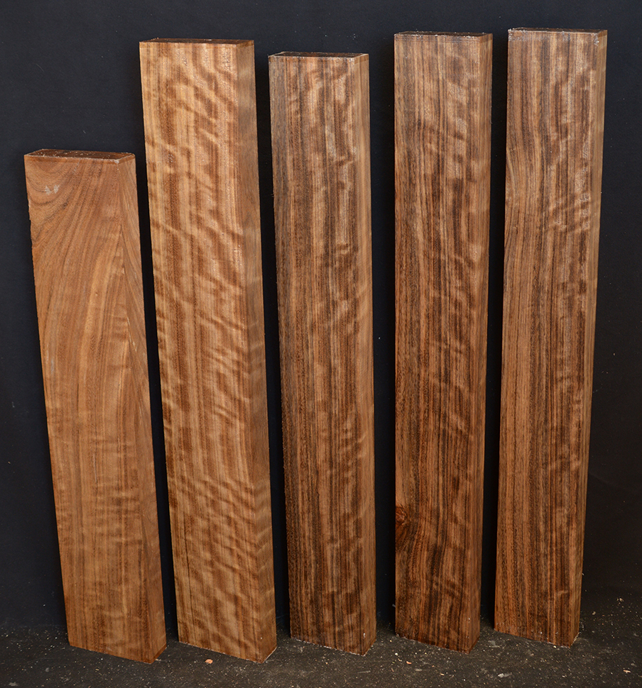 Also called Ovangkol and Amazakoue. This wood is increasingly becoming popular as an acoustic guitar wood. The color varies from a rich, golden brown to a lustrous grayish brown usually with a black stripe.