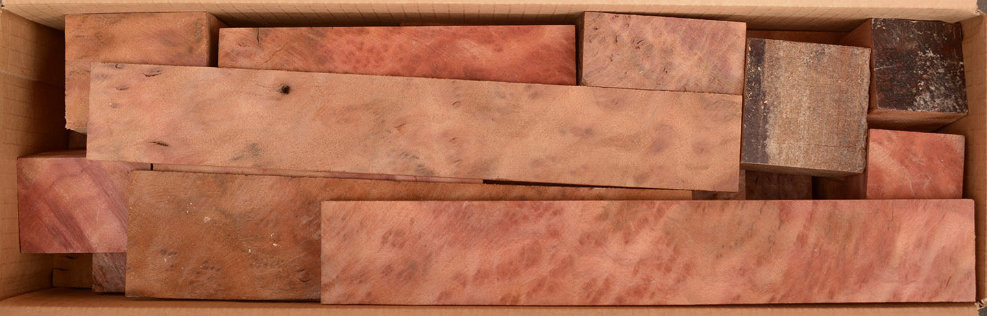 This rare burl is from S.E. Asia and is seldom seen on the world market. It is fine-grained and varies in color from a light reddish-brown to almost scarlet. It is easy to work and has a very pungent, spicy scent. For a burl it is remarkably stable. Green to partially air dried.