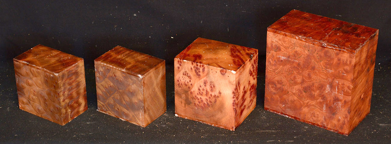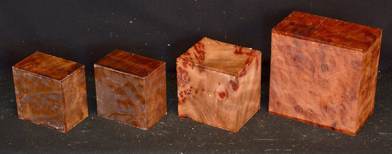This rare burl is from S.E. Asia and is seldom seen on the world market. It is fine-grained and varies in color from a light reddish-brown to almost scarlet. It is easy to work and has a very pungent, spicy scent. For a burl it is remarkably stable. Green to partially air dried.