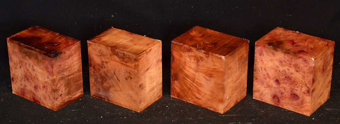 This rare burl is from S.E. Asia and is seldom seen on the world market. It is fine-grained and varies in color from a light reddish-brown to almost scarlet. It is easy to work and has a very pungent, spicy scent. For a burl it is remarkably stable. Green to partially air dried.