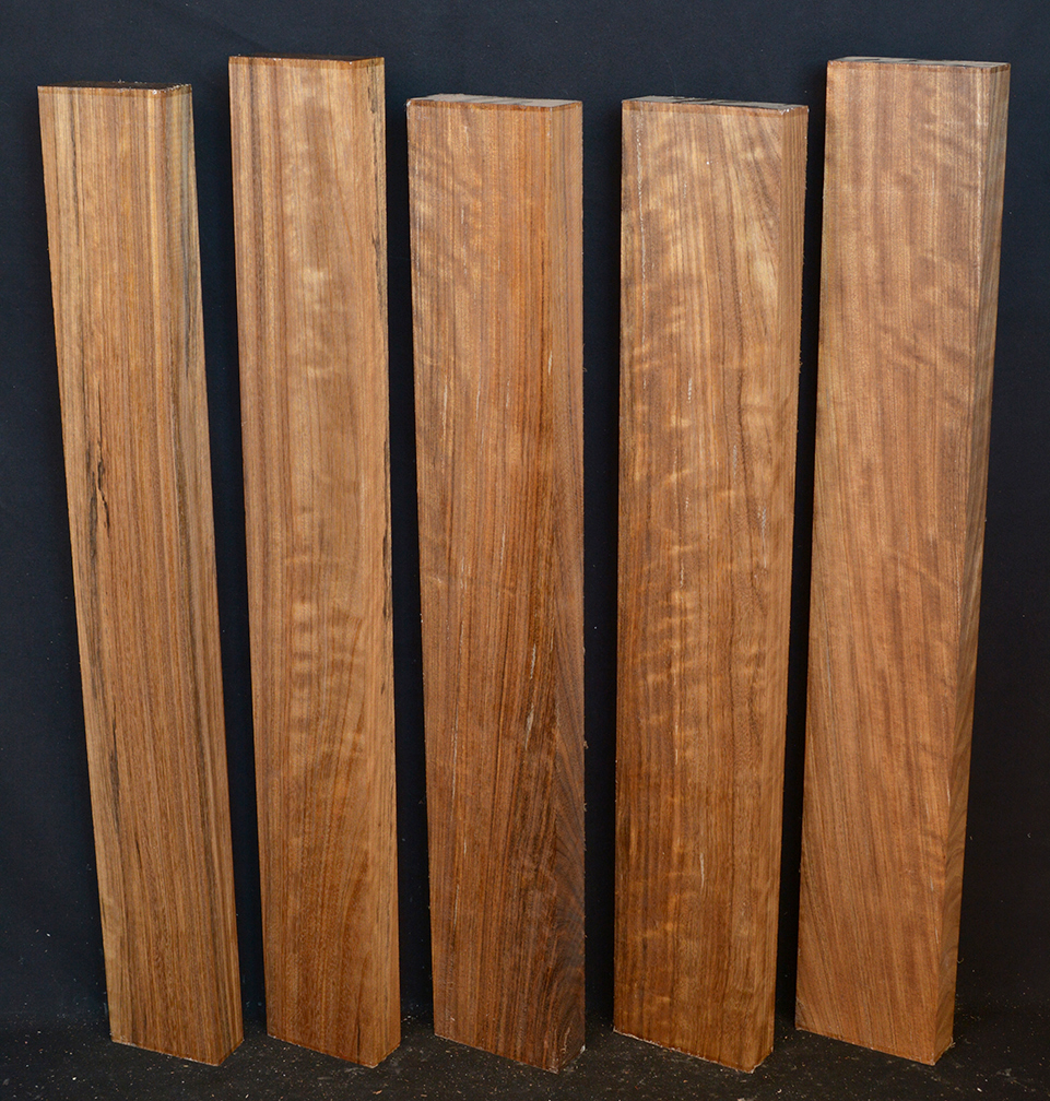 Also called Ovangkol and Amazakoue. This wood is increasingly becoming popular as an acoustic guitar wood. The color varies from a rich, golden brown to a lustrous grayish brown usually with a black stripe.