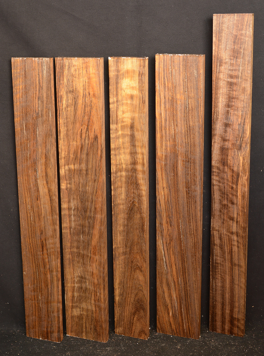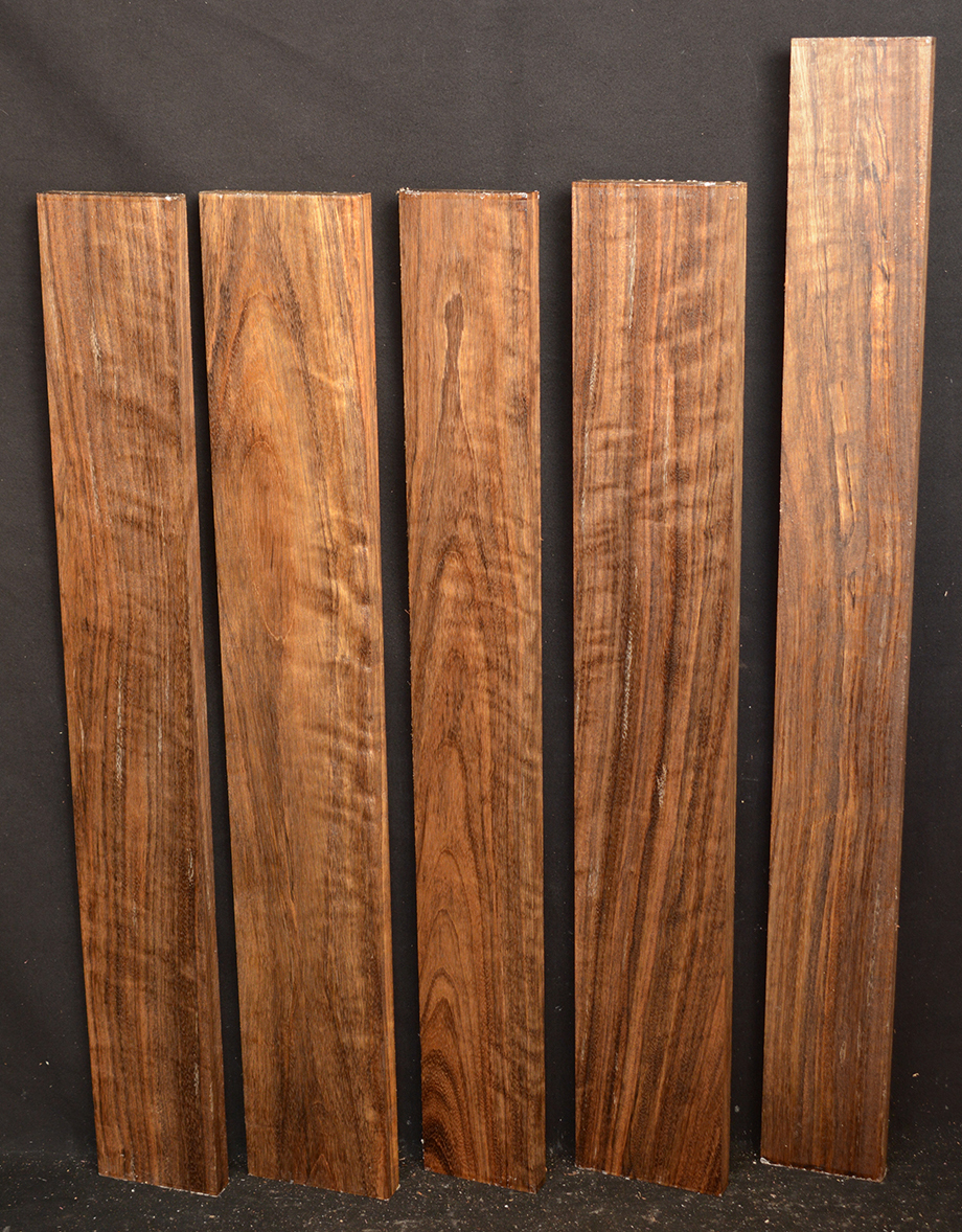 Also called Ovangkol and Amazakoue. This wood is increasingly becoming popular as an acoustic guitar wood. The color varies from a rich, golden brown to a lustrous grayish brown usually with a black stripe.