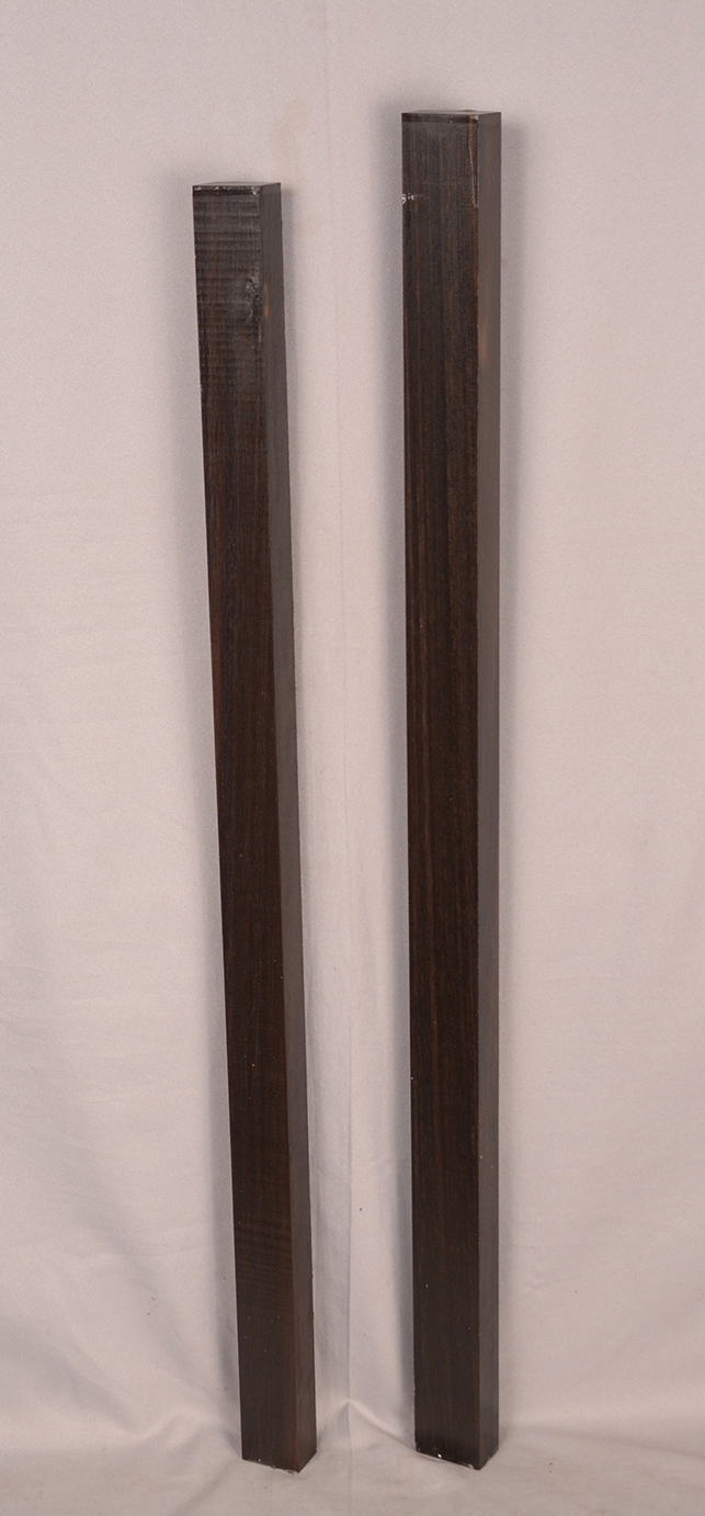 Sometimes called Gabon or Gaboon, this Ebony is sometimes jet black but oftentimes has grayish streaks that mostly disappear when finished or after the made object has been put into service. This Ebony has a marked resistance to checking that is characteristic of some of the Indian and Asian species. It has a wonderful texture and is easily carved, planed, turned, and milled. It is fairly fine-grained and takes a high polish. This Ebony usually originates in either Cameroon or Nigeria and the logs are rough hewn in the forest and oftentimes brought to the nearest road by human porters. With the disappearance of other species of black Ebony this species is fast becoming the Ebony of choice.