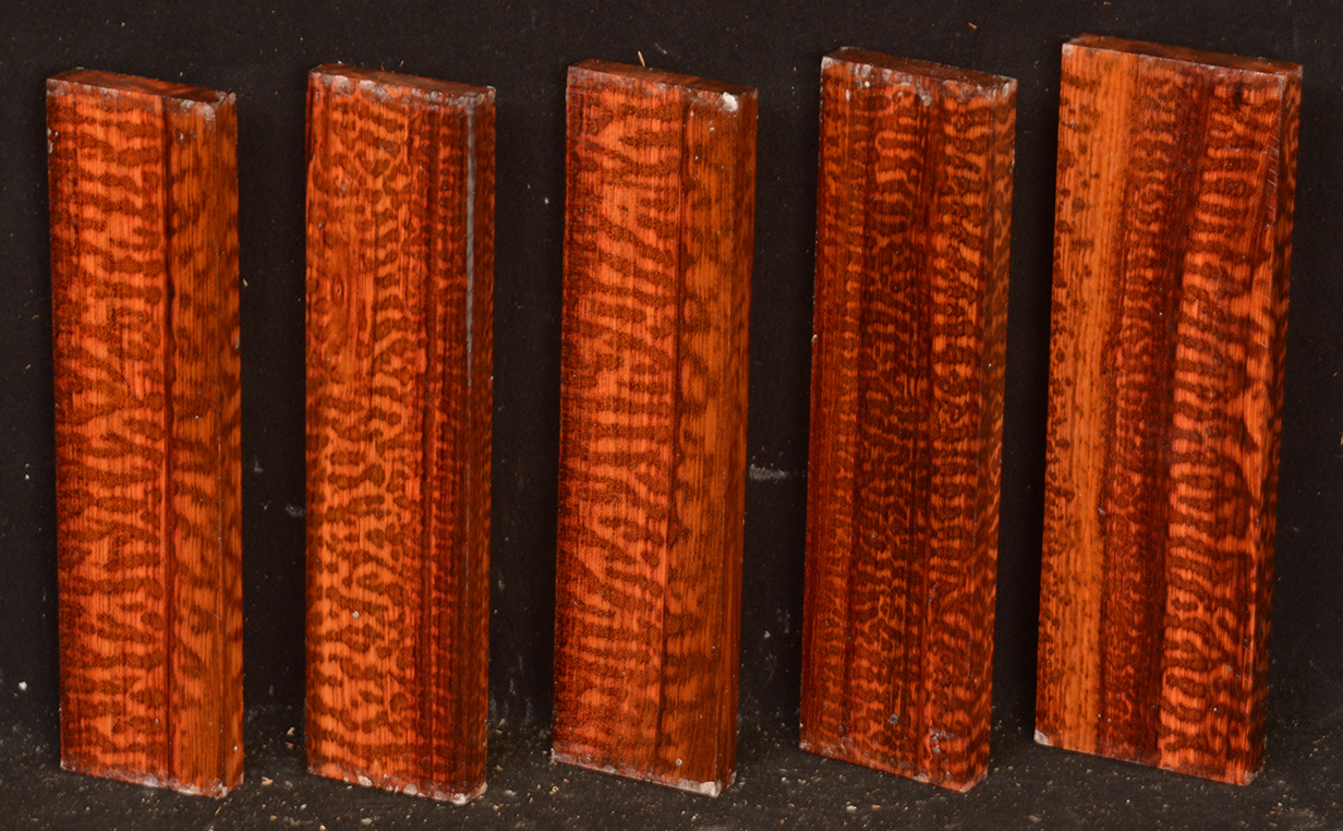 Also called Letterwood and Leopardwood. Color: dark red to reddish brown with irregular black speckles or stripes. Fine textured and highly lustrous. Very hard and heavy, 75-84 lbs/cu ft. Takes a beautiful finish. Very rare and very expensive. Guyana and Surinam.