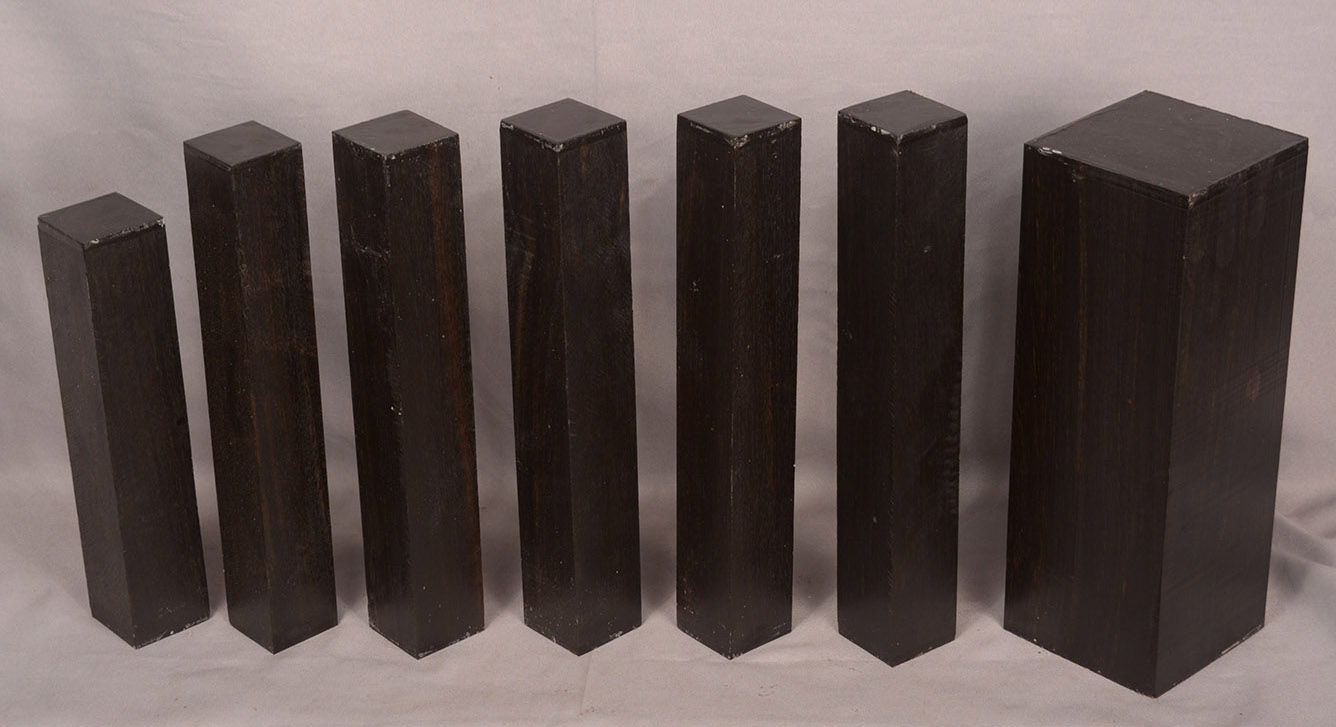 Sometimes called Gabon or Gaboon, this Ebony is sometimes jet black but oftentimes has grayish streaks that mostly disappear when finished or after the made object has been put into service. This Ebony has a marked resistance to checking that is characteristic of some of the Indian and Asian species. It has a wonderful texture and is easily carved, planed, turned, and milled. It is fairly fine-grained and takes a high polish. This Ebony usually originates in either Cameroon or Nigeria and the logs are rough hewn in the forest and oftentimes brought to the nearest road by human porters. With the disappearance of other species of black Ebony this species is fast becoming the Ebony of choice.