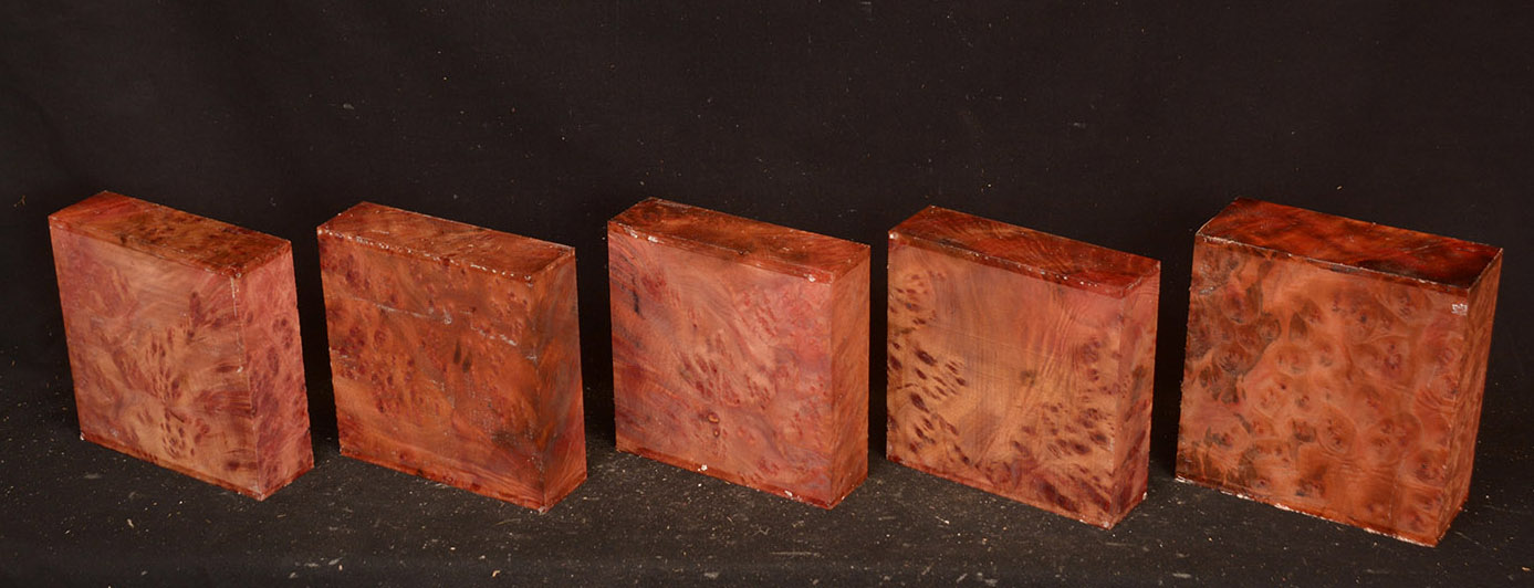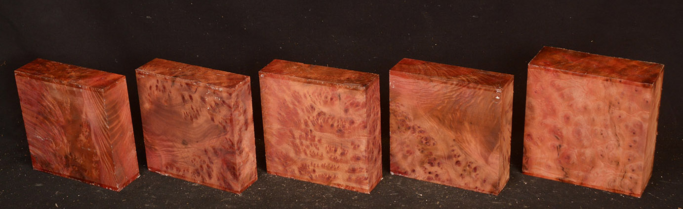 This rare burl is from S.E. Asia and is seldom seen on the world market. It is fine-grained and varies in color from a light reddish-brown to almost scarlet. It is easy to work and has a very pungent, spicy scent. For a burl it is remarkably stable. Green to partially air dried.