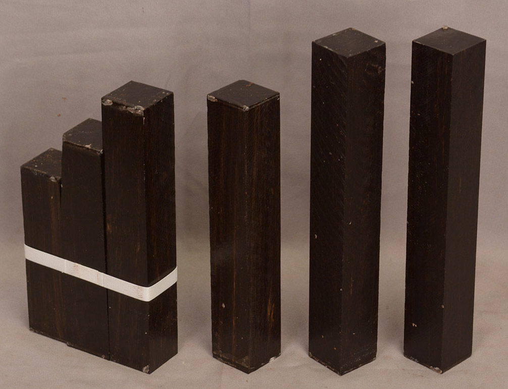 Sometimes called Gabon or Gaboon, this Ebony is sometimes jet black but oftentimes has grayish streaks that mostly disappear when finished or after the made object has been put into service. This Ebony has a marked resistance to checking that is characteristic of some of the Indian and Asian species. It has a wonderful texture and is easily carved, planed, turned, and milled. It is fairly fine-grained and takes a high polish. This Ebony usually originates in either Cameroon or Nigeria and the logs are rough hewn in the forest and oftentimes brought to the nearest road by human porters. With the disappearance of other species of black Ebony this species is fast becoming the Ebony of choice.