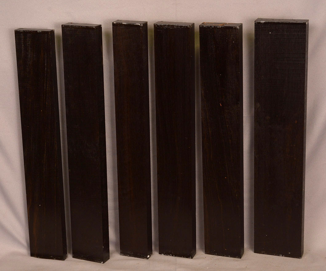 Sometimes called Gabon or Gaboon, this Ebony is sometimes jet black but oftentimes has grayish streaks that mostly disappear when finished or after the made object has been put into service. This Ebony has a marked resistance to checking that is characteristic of some of the Indian and Asian species. It has a wonderful texture and is easily carved, planed, turned, and milled. It is fairly fine-grained and takes a high polish. This Ebony usually originates in either Cameroon or Nigeria and the logs are rough hewn in the forest and oftentimes brought to the nearest road by human porters. With the disappearance of other species of black Ebony this species is fast becoming the Ebony of choice.