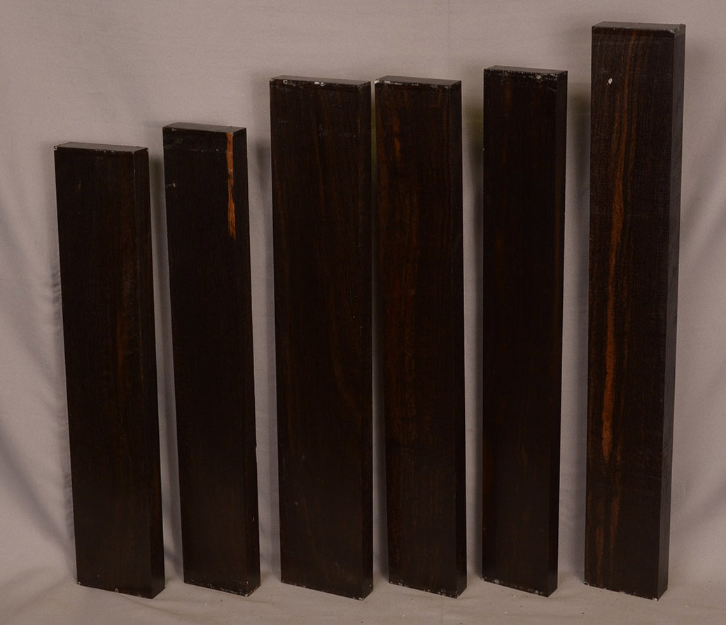 Sometimes called Gabon or Gaboon, this Ebony is sometimes jet black but oftentimes has grayish streaks that mostly disappear when finished or after the made object has been put into service. This Ebony has a marked resistance to checking that is characteristic of some of the Indian and Asian species. It has a wonderful texture and is easily carved, planed, turned, and milled. It is fairly fine-grained and takes a high polish. This Ebony usually originates in either Cameroon or Nigeria and the logs are rough hewn in the forest and oftentimes brought to the nearest road by human porters. With the disappearance of other species of black Ebony this species is fast becoming the Ebony of choice.