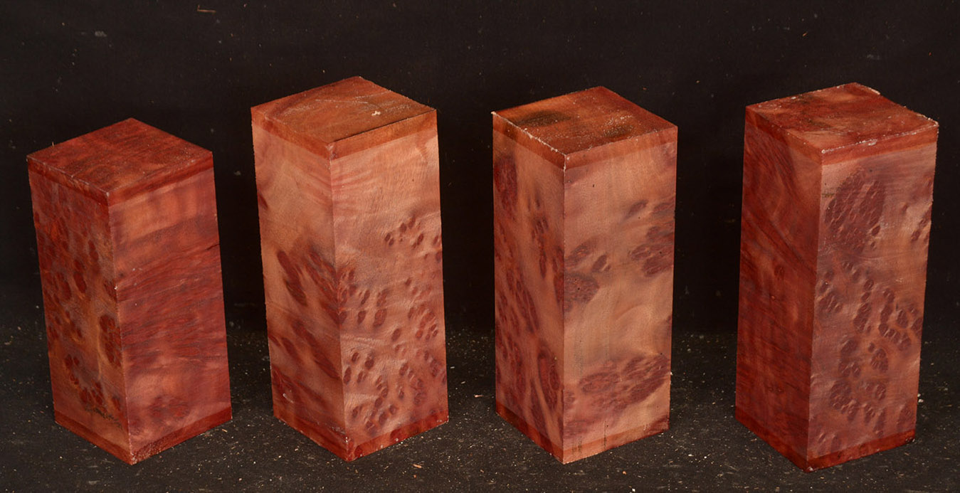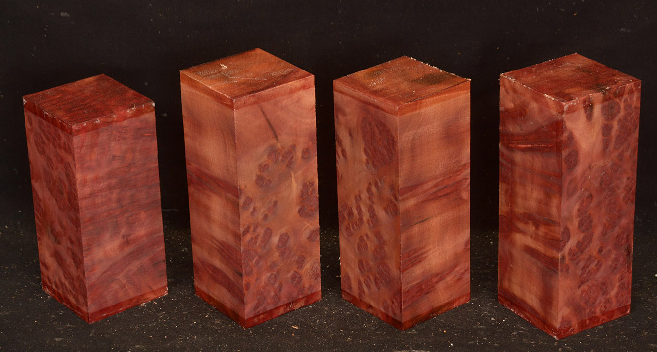This rare burl is from S.E. Asia and is seldom seen on the world market. It is fine-grained and varies in color from a light reddish-brown to almost scarlet. It is easy to work and has a very pungent, spicy scent. For a burl it is remarkably stable. Green to partially air dried.