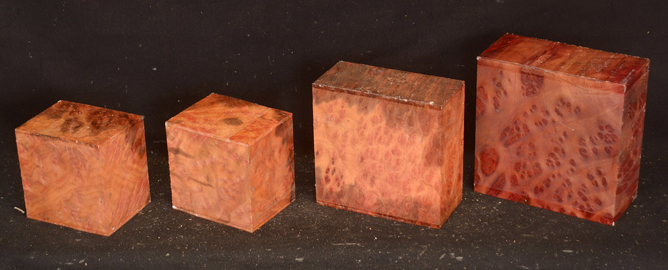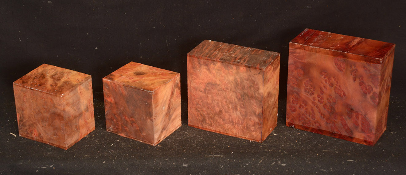 This rare burl is from S.E. Asia and is seldom seen on the world market. It is fine-grained and varies in color from a light reddish-brown to almost scarlet. It is easy to work and has a very pungent, spicy scent. For a burl it is remarkably stable. Green to partially air dried.