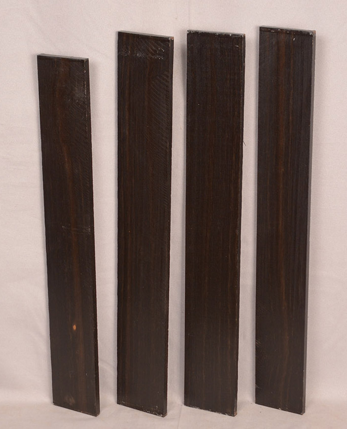 Sometimes called Gabon or Gaboon, this Ebony is sometimes jet black but oftentimes has grayish streaks that mostly disappear when finished or after the made object has been put into service. This Ebony has a marked resistance to checking that is characteristic of some of the Indian and Asian species. It has a wonderful texture and is easily carved, planed, turned, and milled. It is fairly fine-grained and takes a high polish. This Ebony usually originates in either Cameroon or Nigeria and the logs are rough hewn in the forest and oftentimes brought to the nearest road by human porters. With the disappearance of other species of black Ebony this species is fast becoming the Ebony of choice.