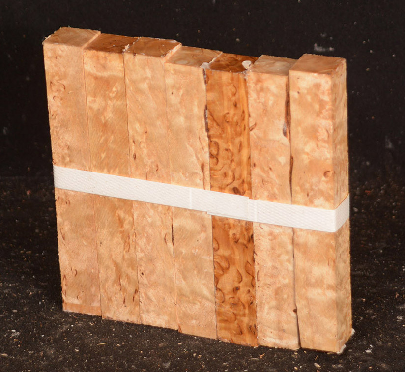Also called Alpine Burl or Karelian Burl after the Finnish province of Karelia where it is often found. The high figure found in this wood is caused when the tree heals the damage done by an invasive boring beetle. The beetle infestation leaves the trees stunted and sometimes deformed but produces wood with small twists and swirls that highlight the darker, burly figure. Rare.