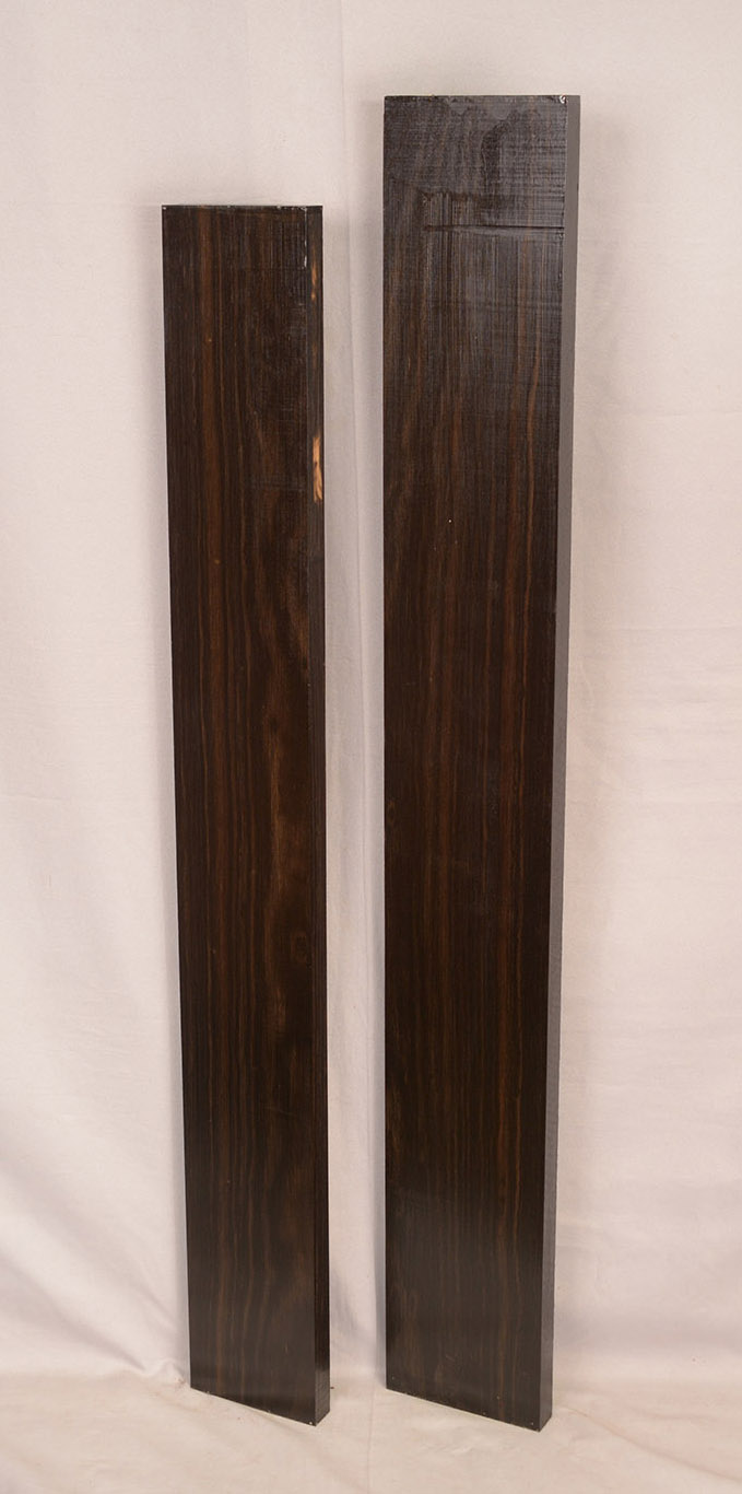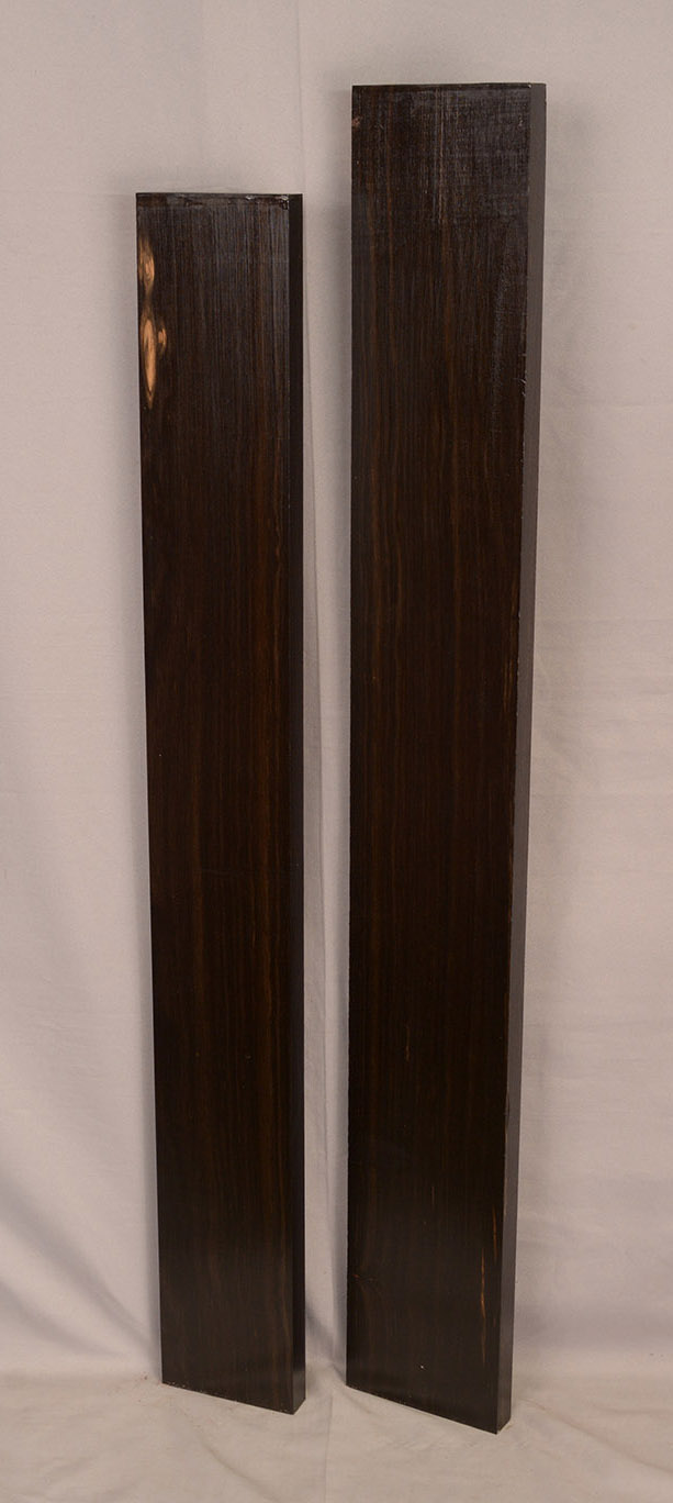 Sometimes called Gabon or Gaboon, this Ebony is sometimes jet black but oftentimes has grayish streaks that mostly disappear when finished or after the made object has been put into service. This Ebony has a marked resistance to checking that is characteristic of some of the Indian and Asian species. It has a wonderful texture and is easily carved, planed, turned, and milled. It is fairly fine-grained and takes a high polish. This Ebony usually originates in either Cameroon or Nigeria and the logs are rough hewn in the forest and oftentimes brought to the nearest road by human porters. With the disappearance of other species of black Ebony this species is fast becoming the Ebony of choice.