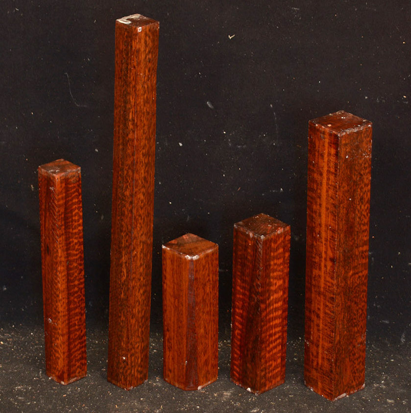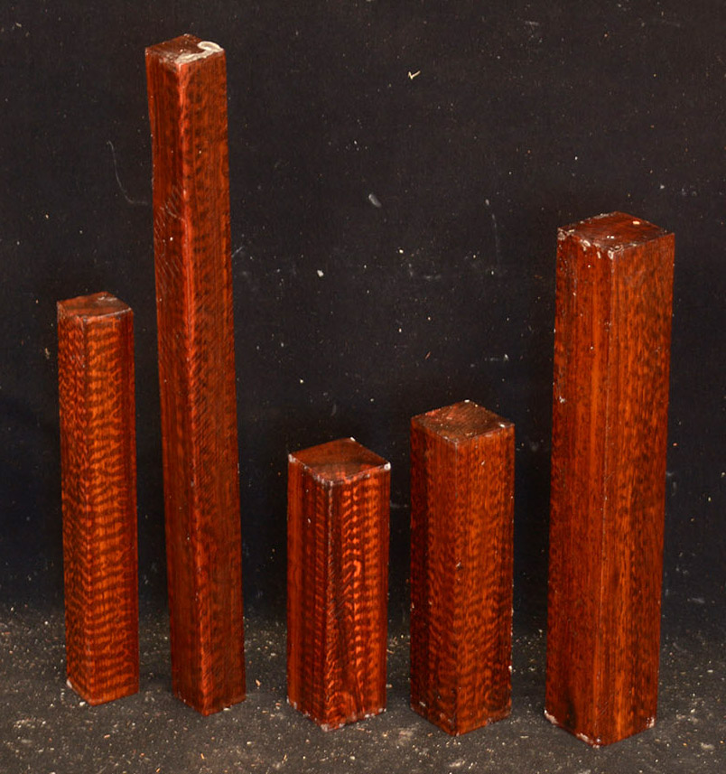 Also called Letterwood and Leopardwood. Color: dark red to reddish brown with irregular black speckles or stripes. Fine textured and highly lustrous. Very hard and heavy, 75-84 lbs/cu ft. Takes a beautiful finish. Very rare and very expensive. Guyana and Surinam.