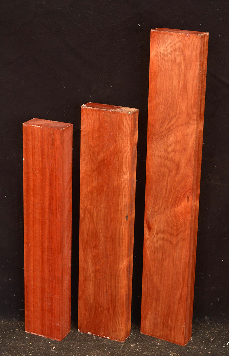 Also called Satine, Cacique, and Cardinalwood. The heartwood is a rich strawberry red, in sharp contrast to the light colored sapwood. Takes a high, lustrous finish. Kiln-dried.