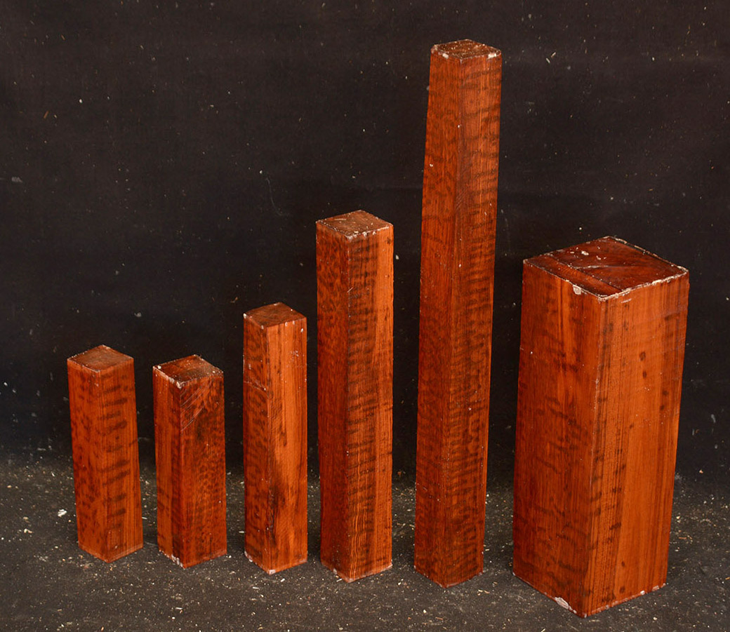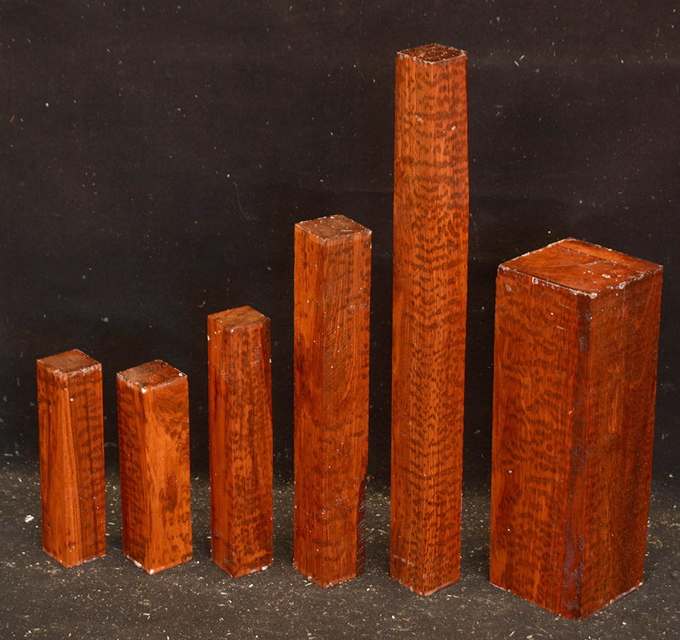 Also called Letterwood and Leopardwood. Color: dark red to reddish brown with irregular black speckles or stripes. Fine textured and highly lustrous. Very hard and heavy, 75-84 lbs/cu ft. Takes a beautiful finish. Very rare and very expensive. Guyana and Surinam.
