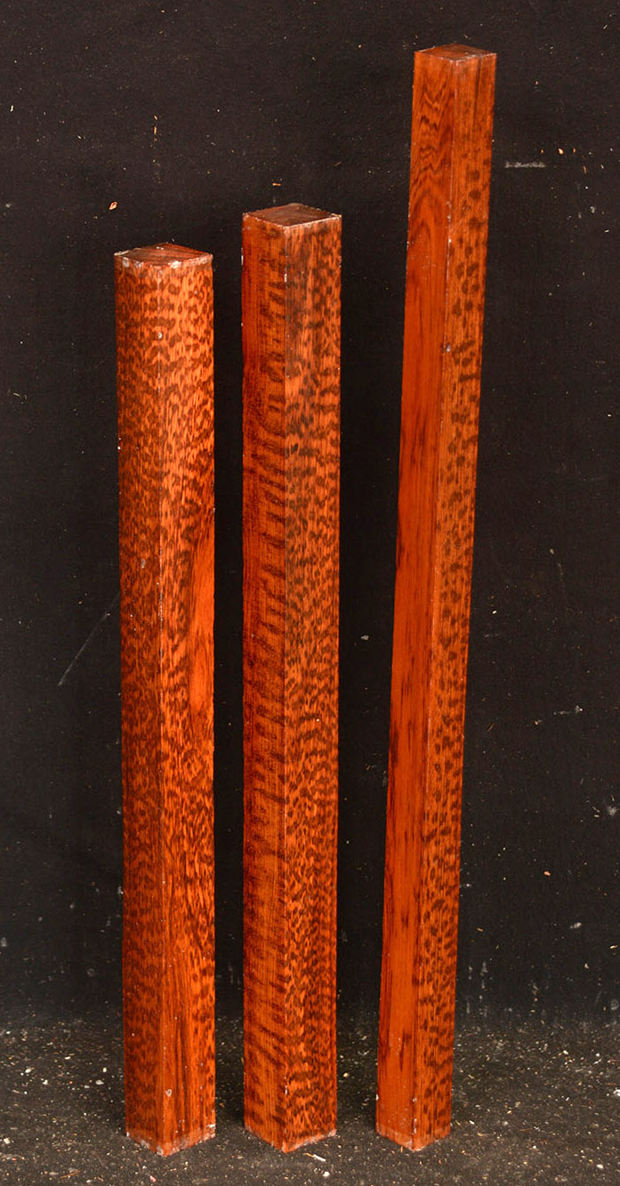 Also called Letterwood and Leopardwood. Color: dark red to reddish brown with irregular black speckles or stripes. Fine textured and highly lustrous. Very hard and heavy, 75-84 lbs/cu ft. Takes a beautiful finish. Very rare and very expensive. Guyana and Surinam.