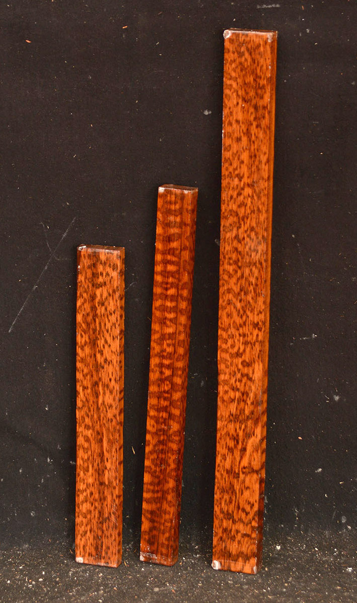 Also called Letterwood and Leopardwood. Color: dark red to reddish brown with irregular black speckles or stripes. Fine textured and highly lustrous. Very hard and heavy, 75-84 lbs/cu ft. Takes a beautiful finish. Very rare and very expensive. Guyana and Surinam.