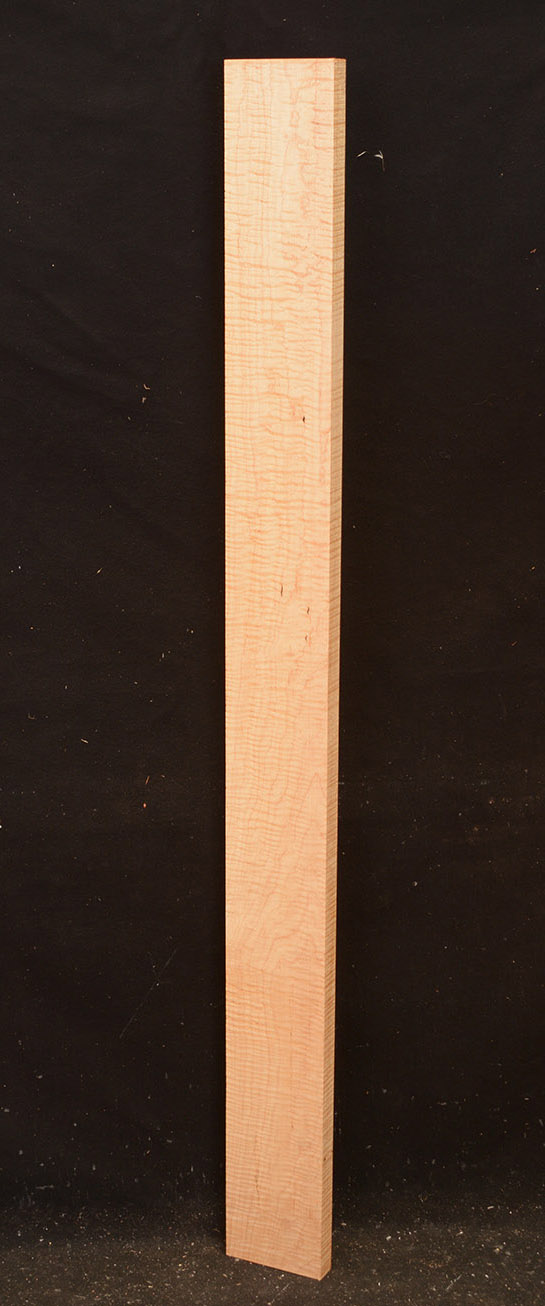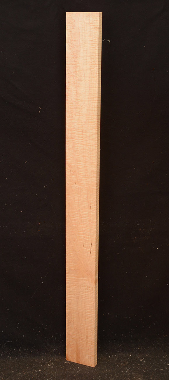 The heartwood is white or cream to light brown or reddish brown. Because of the generally small size of available logs, most sawmills produce flatsawn boards which will show a broken curl on the surface and a fiddleback curl on the quartersawn edge. Hard and heavy, 45 lbs/cu ft. Easy to work and takes a smooth polish. U.S.A.