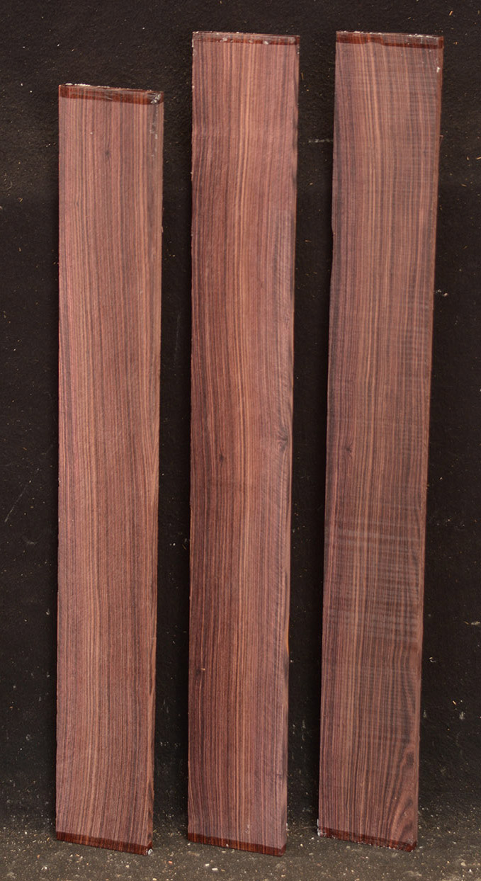A true rosewood. The wood is variegated with different shades of purple and darker stripes. The specific gravity is 1.2 so it is hard and heavy. Used for inlays and bandings, turnery, and fancy furniture accessories.