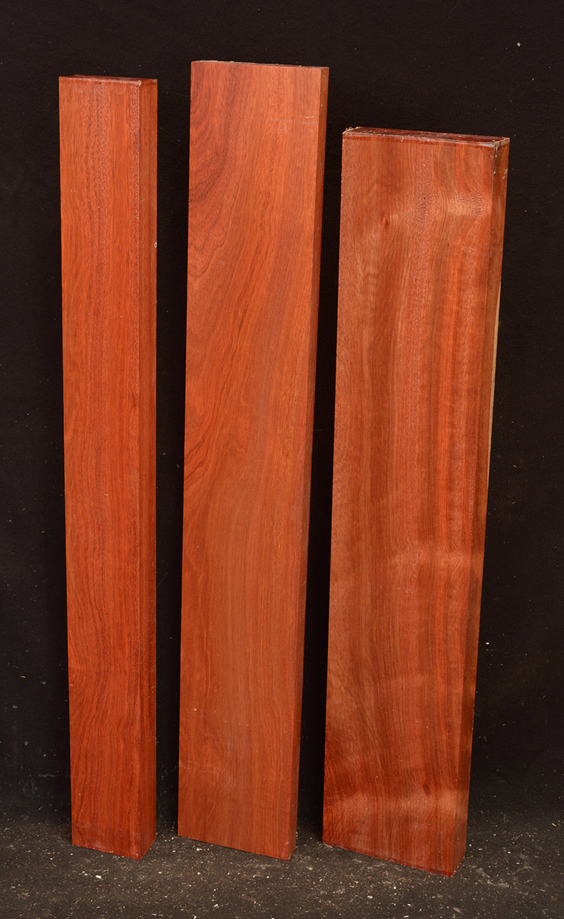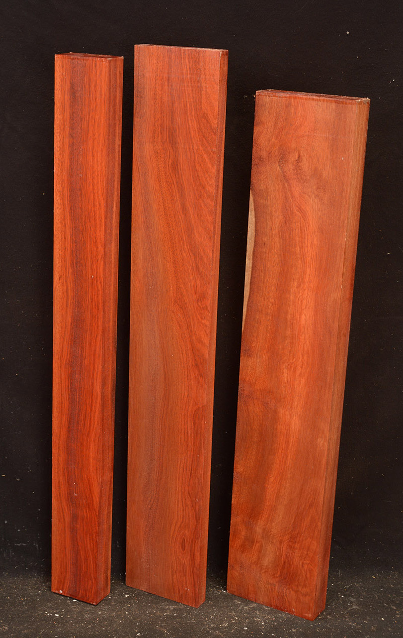 Also called Satine, Cacique, and Cardinalwood. The heartwood is a rich strawberry red, in sharp contrast to the light colored sapwood. Takes a high, lustrous finish. Kiln-dried.