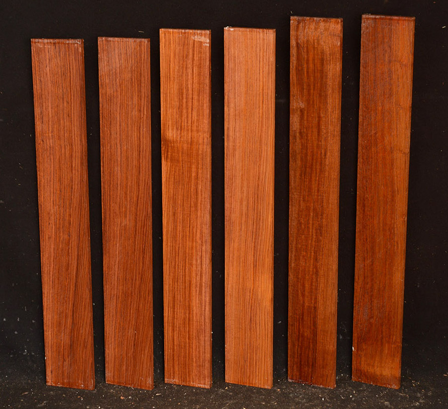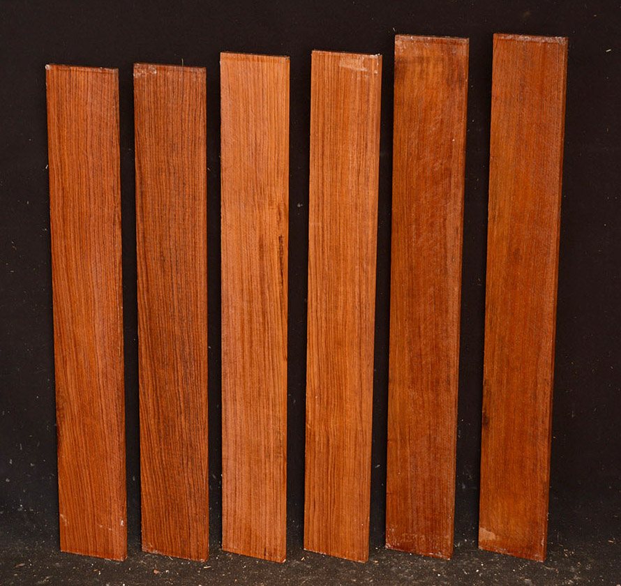 This Rosewood species has a reddish-brown to dark brown colored heartwood contrasting the almost white sapwood. The dust has a sweet odor. It is an excellent furniture/case works/jewelry box wood and even though it has a medium texture it does take a nice polish. We also offer it as a musical instrument wood (see guitar fingerboards and backs & sides elsewhere on the site). It has a very "crisp" tap tone with good sustain.