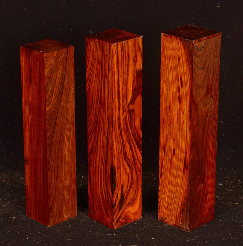 The wood is very oily which makes it difficult to glue but on the plus side the oiliness makes it easy to produce a fantastic polish on finished pieces. Wear a respirator mask when working Cocobolo as the dust can produce asthma-like reactions. Cocobolo is a small to medium sized tree and is found mainly in Mexico, Costa Rica, Nicaragua, and Panama.
