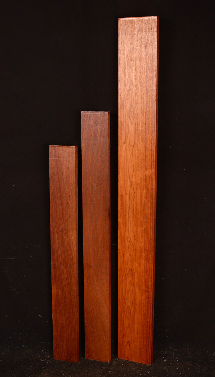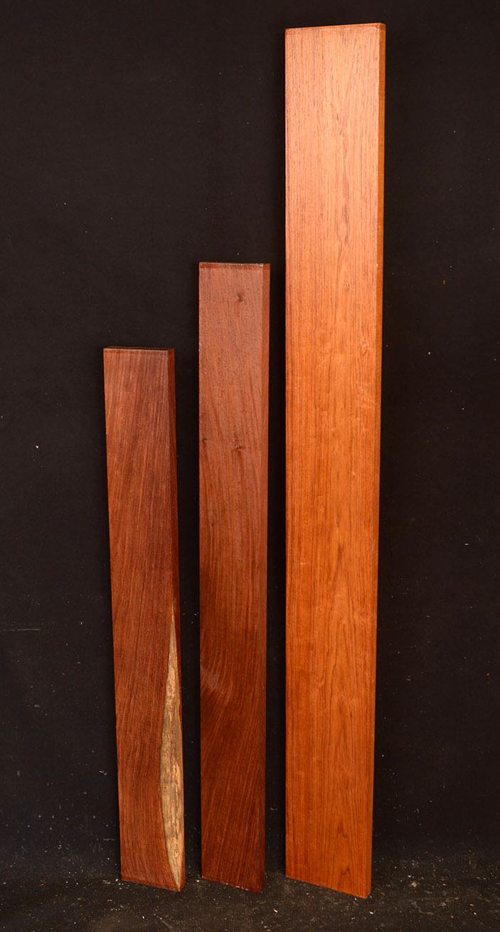 This Rosewood species has a reddish-brown to dark brown colored heartwood contrasting the almost white sapwood. The dust has a sweet odor. It is an excellent furniture/case works/jewelry box wood and even though it has a medium texture it does take a nice polish. We also offer it as a musical instrument wood (see guitar fingerboards and backs & sides elsewhere on the site). It has a very "crisp" tap tone with good sustain.
